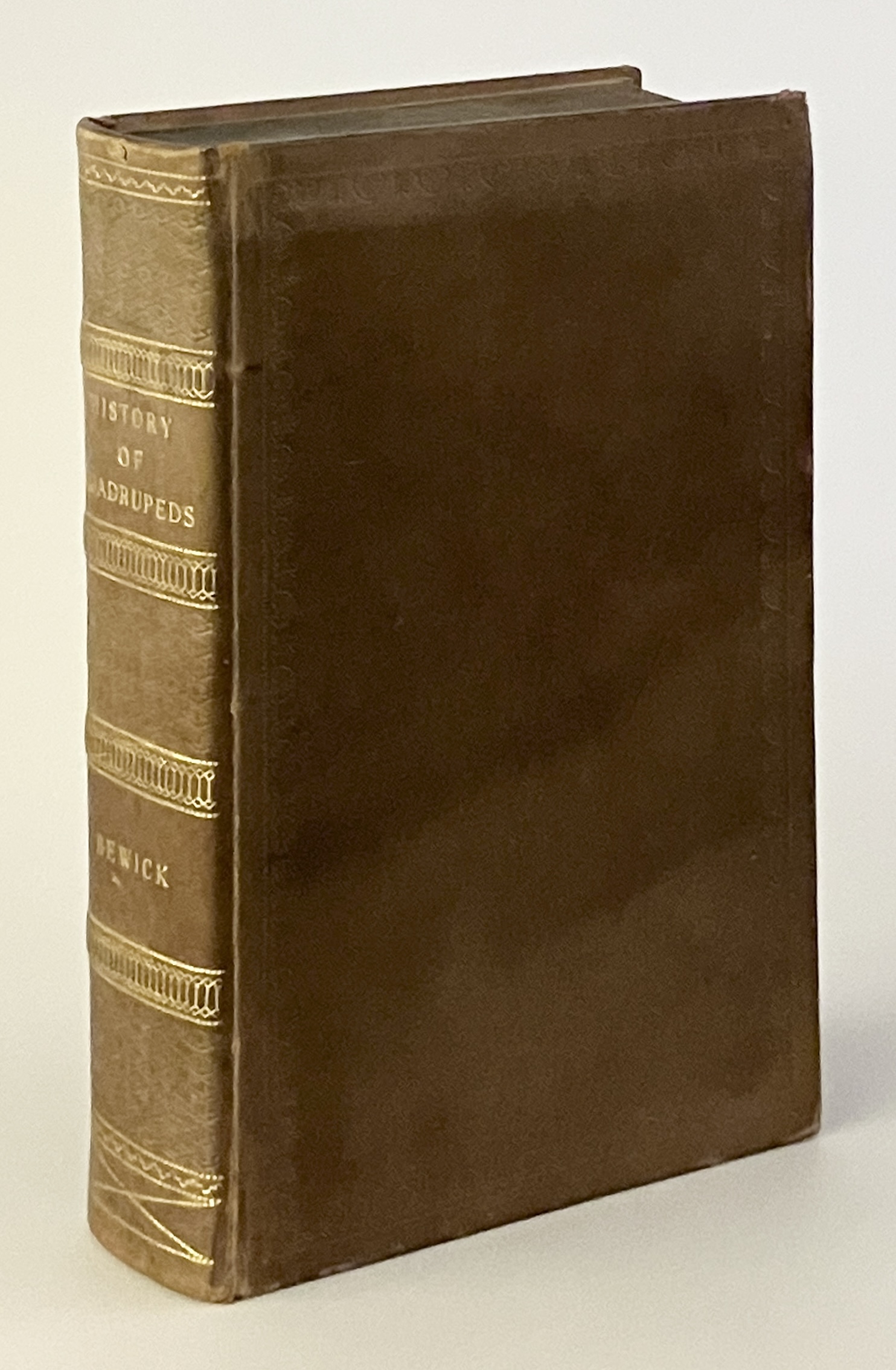 Newcastle Upon Tyne: Printed by Edward Walker, for T. Bewick; Longmand, Hurst, Rees, Orme, and Brown, London; and Wilson and Sons, York, 1820. Seventh edition. Roscoe 7b, variant A. 528 pp. Illustrated with Bewicks woodcuts. Some marginal notes in pencil (Danish translations of the different depicted animals). Owner’s signature to title leaf. Full calf with blind-tooled decorations to the outer borders. Spine a little sunned. Light wear to edges and corners.