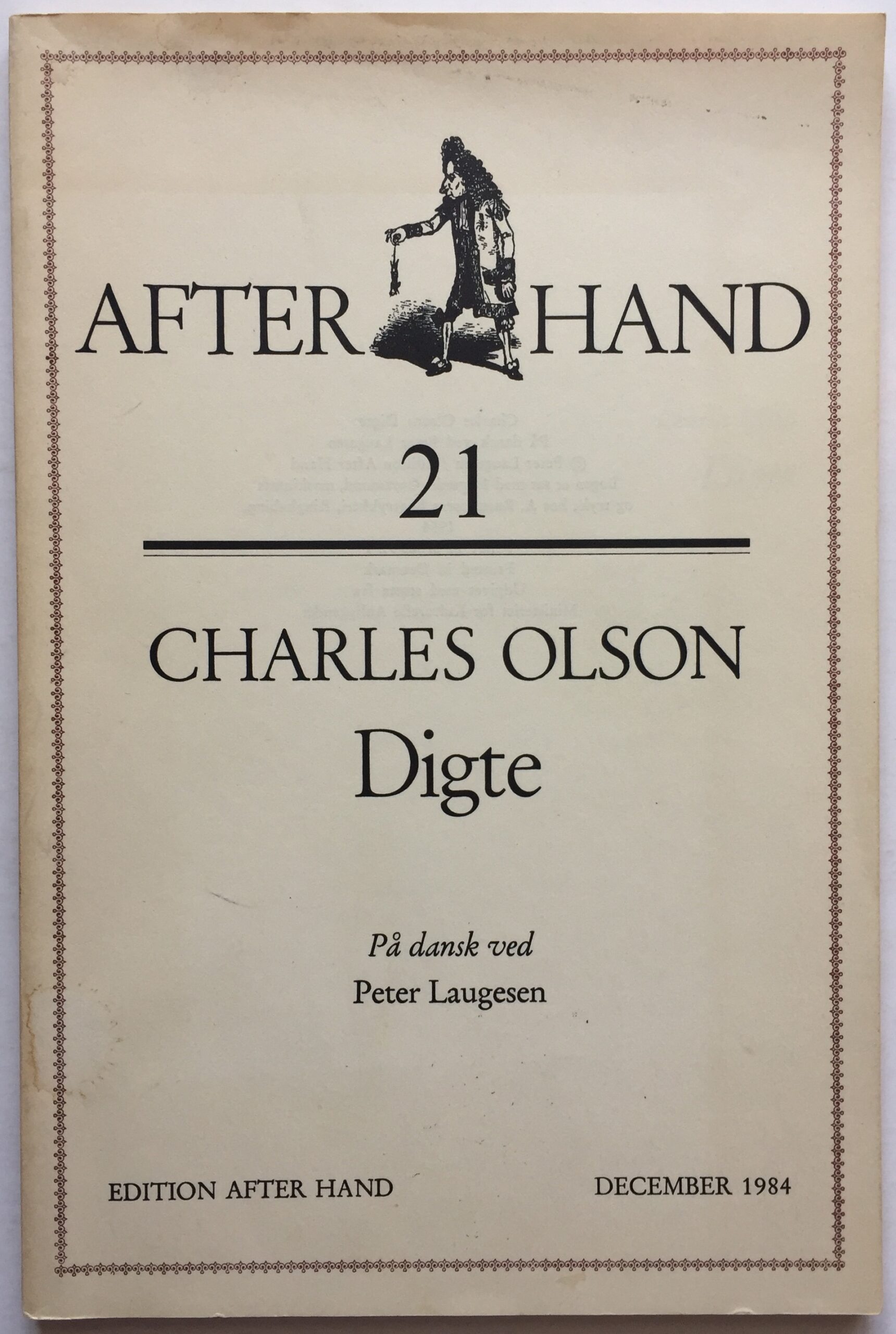 Edition After Hand, 1984. På dansk ved Peter Laugesen. 62 sider. Heftet med orig. omslag. Let plettet omslag (se foto).