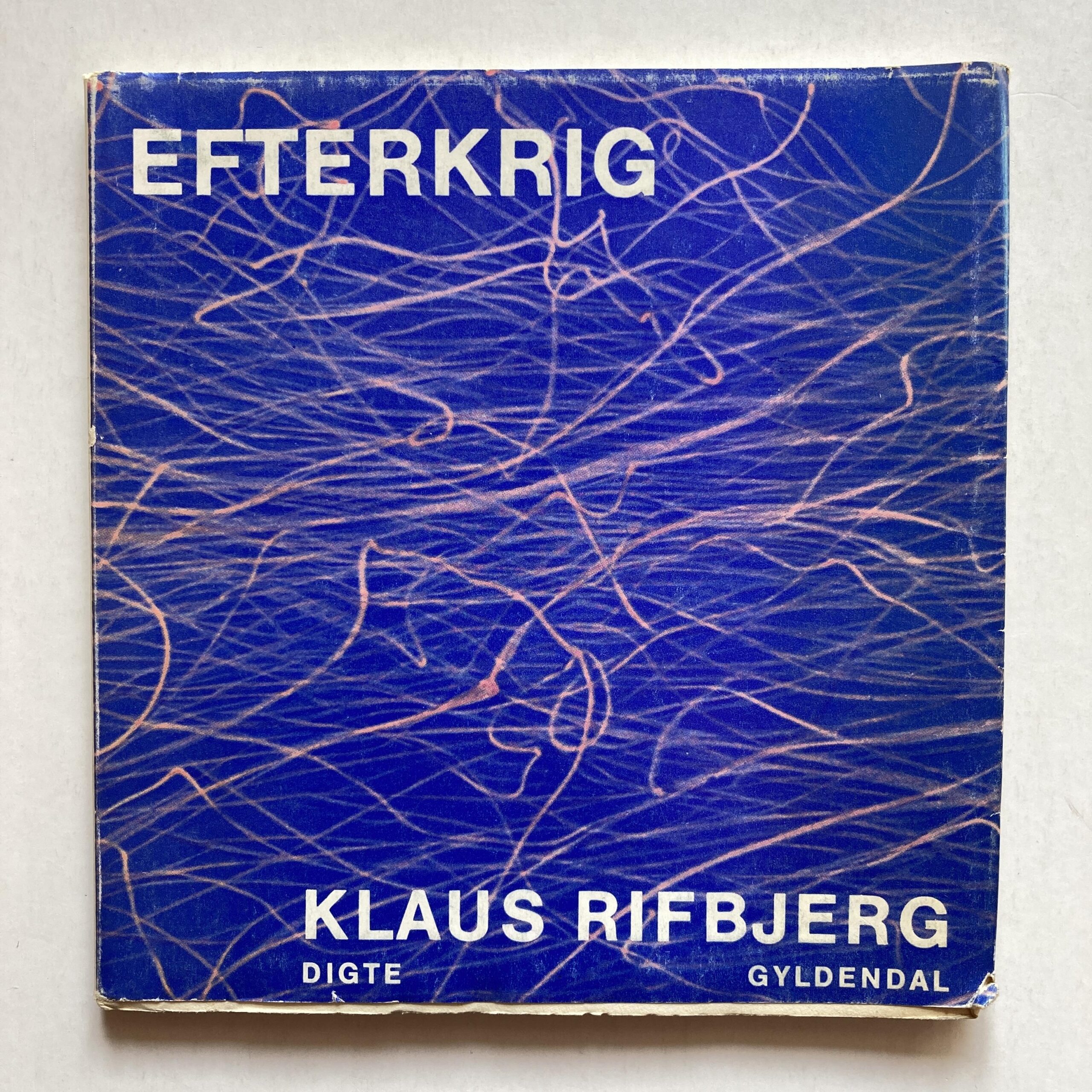 Gyldendal, 1964. 2. udgave. 49 sider. Heftet med orig. omslag. Dedikation fra Klaus Rifbjerg: “Her er vi igen! / Roligt og stille. / Hej / Klaus / 19-9-64”. Lette brugsspor.