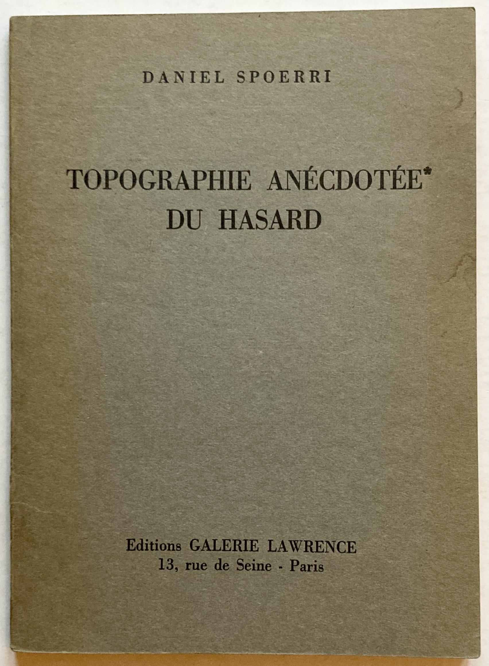 Editions GALERIE LAWRENCE, 13, rue de Seine – Paris, 1961. 53 pp. + fold-out plate. First edition. Orig. wraps. Front wrap a bit stained also affecting the first ten page at the fore edge (inquire for additional photographs). Stamp from the legendary Copenhagen gallery, Galerie Køpcke (curated by German-born Fluxus-artist Arthur Köpcke), to the title page. Aside from the mentioned stain generally a well preserved copy. Originally published with a yellow paper belly-band that is included, but torn at one of the seams.