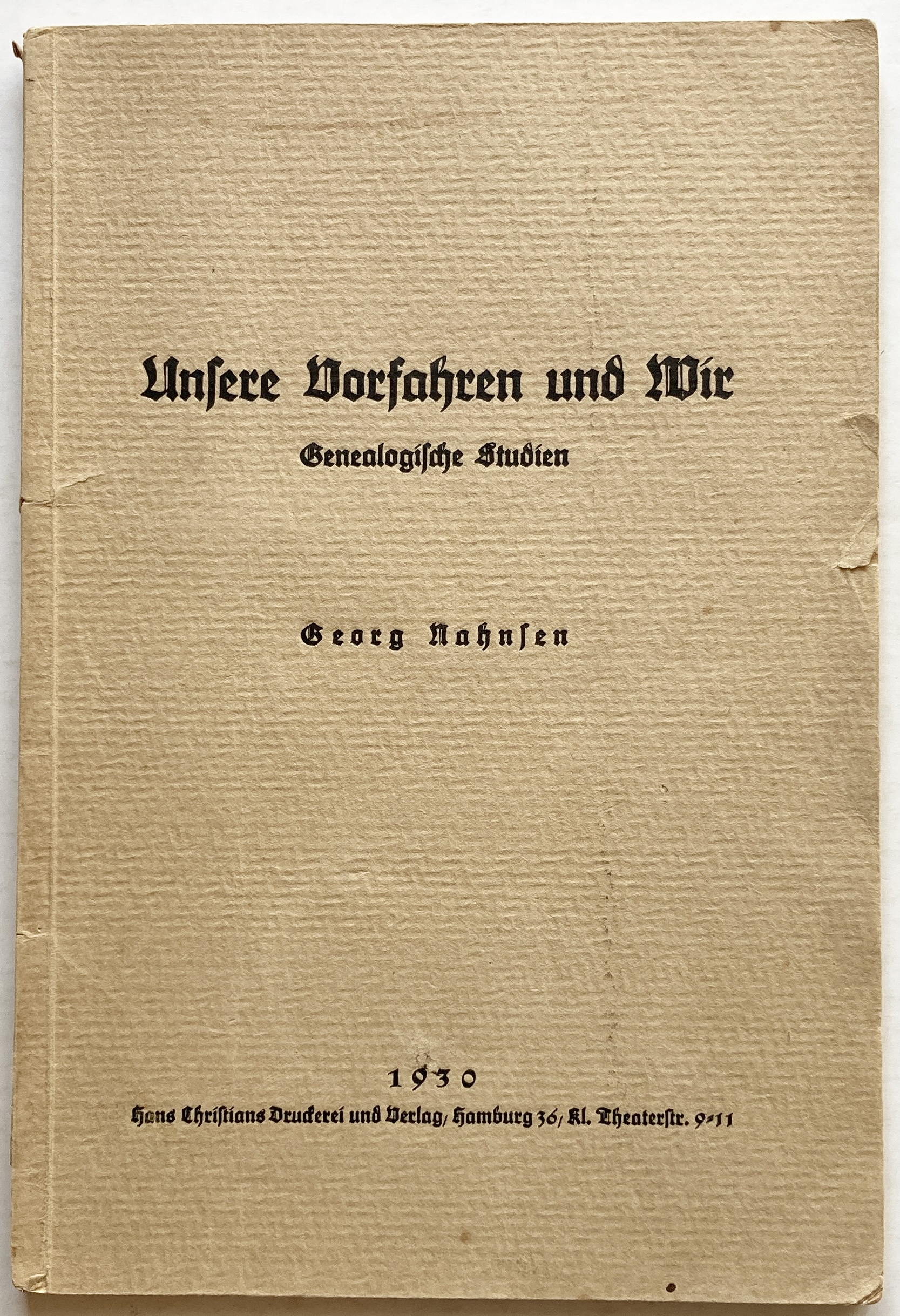 Hans Christians Druckerei und Verlag, Hamburg, 1930. 55 pages. Orig. printed wraps. Owner’s signature to title-leaf. General shelfwear. Good++.